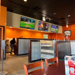 This place was a good stop for our group of 20. They sat us quickly and they were very attentive. Plus the food came out all at the same time which was great. The server was wonderful.And their music selection was good. I ordered one of their signature chicken sandwiches with a side of wedges I was very satisfied. The sauce really made the sandwich. Most of the other members of my party ordered wings and they did not have a bad thing to say about their food. I forgot to mention that they also have multiple big screen TVs so that if you wanted to watch a game or boxing match that will be no problem. I could not engage in adult festivities because I was on the clock. But the bar situation looked like it was fully stocked. I loved the vibes here and would recommend.